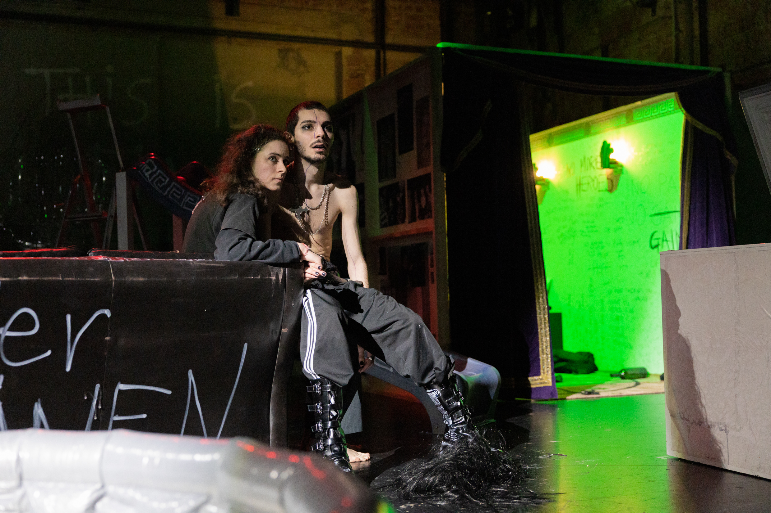 von elias emmert und carlotta huys/ münchner kammerspiele/ werkraum/ mit emma floßmann, julia gräfner, enes sahin, komi togbonou/ bühne und kostüm MOTHERS (camilla lonbirk, olivia schroder-von lüttichau/ musik alexander zwick/ dramaturgie carlotta huys/ regieassistenz antonia grahmann/ fotos julia windischbauer